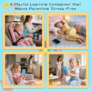 - Thoughtful Kid-Centric Design: The Toy Phone sports a 4-inch HD touchscreen with optimized lighting to reduce blue light exposure, prioritizing eye comfort for a pleasant viewing experience. It packs a 1500mAh battery and 16GB storage, supporting long-lasting usage and saving plenty of photos and story files without frequent data clearing (data transfers use the included USB cable)